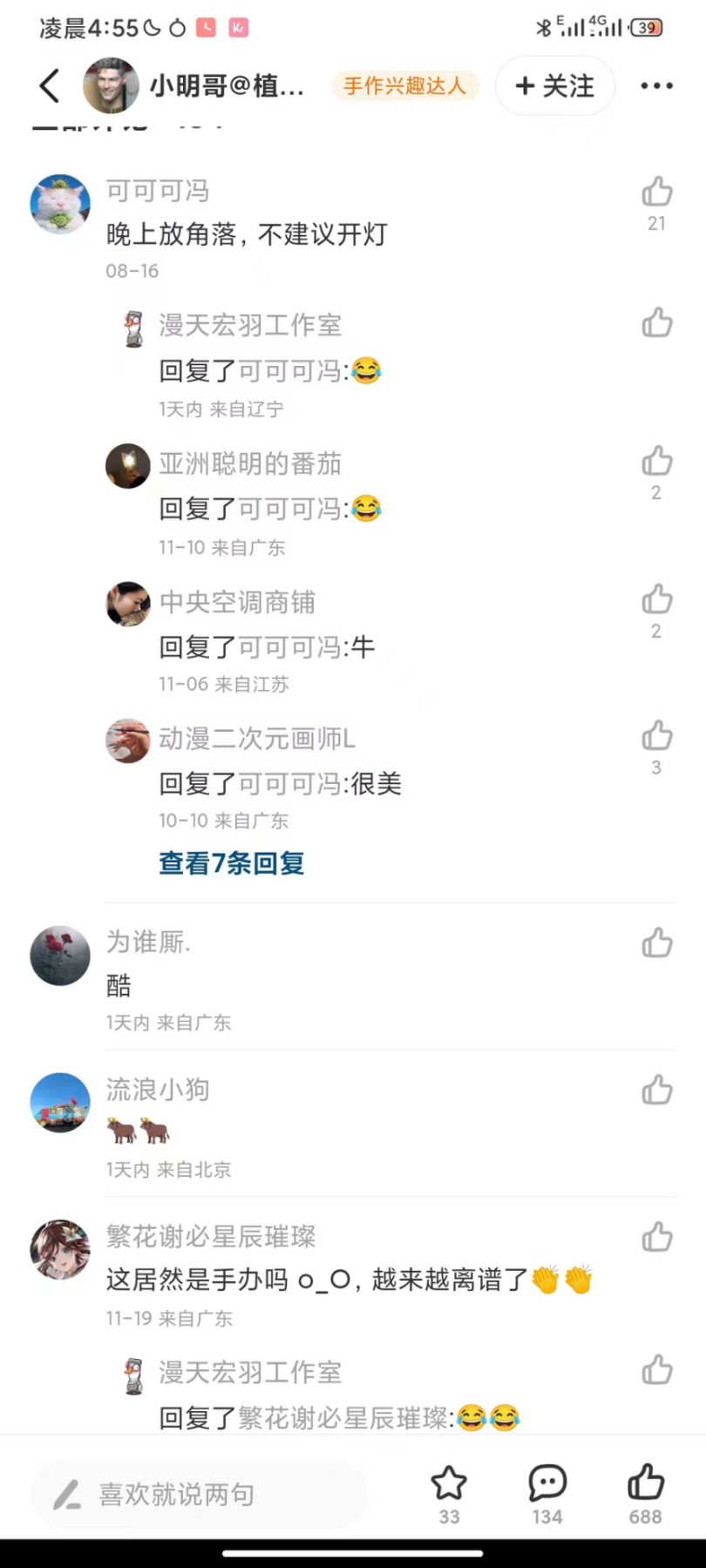 “闲鱼社区氛围比B站好。在B站我发cos图底下一堆无脑评论。闲鱼里大家会问我版式,哪里买的,出二手吗?可以交换吗?感觉都是圈子里的人在玩。也有些不好的评论,只要举报就会被处理,效率比其他社区好。”