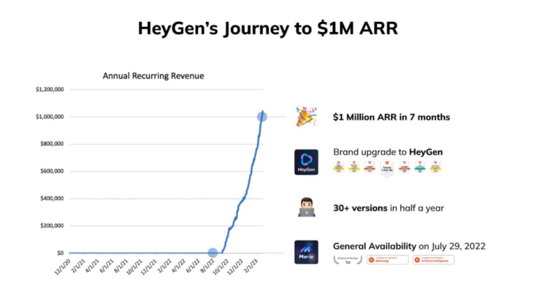 HeyGen用7个月时间达到了100万美元的ARR