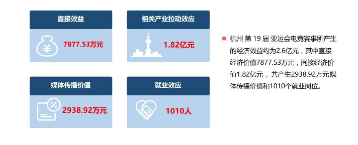 当然,对于民众来说,观念上的改变必然存在底层逻辑的影响,而最直观的底层逻辑,便是经济效益。《报告》指出,杭州亚运会电竞赛事产生的经济效益约为2.6亿元。其中自然包括餐饮、文化、酒旅等等旅游关联产业,但更应注意到的是,受益最大者要数“电竞衍生产业”,例如电竞酒店、网吧等等。