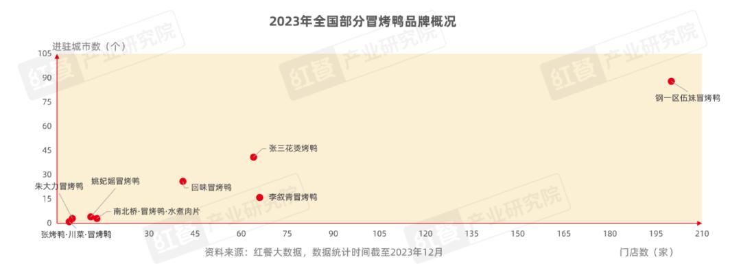 其中,冒烤鸭专门店于2023年加速拓店。如钢一区伍妹冒烤鸭于2023年新开超150家门店,李叙青冒烤鸭近4个月内新开了超50家门店。