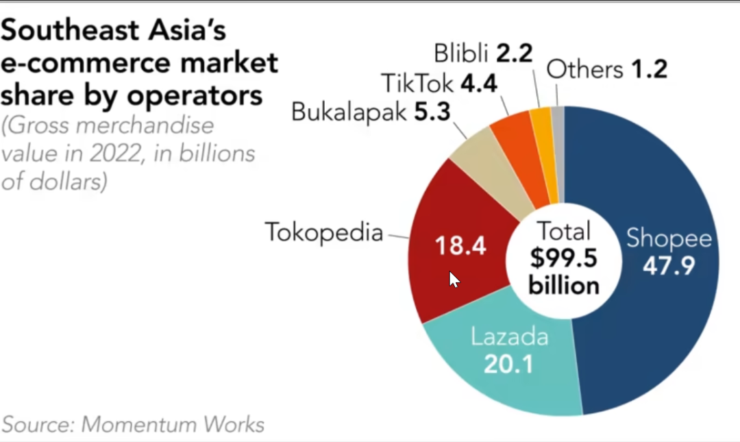 2022年,TikTok Shop在印尼的市场占有率只有不到5%,排名第一的Shopee创办于新加坡,最大的外部股东是腾讯,排名第三的Lazada则隶属于阿里,它们和印尼原生的Tokopedia、Bukalapak共同瓜分了90%以上的市场份额。