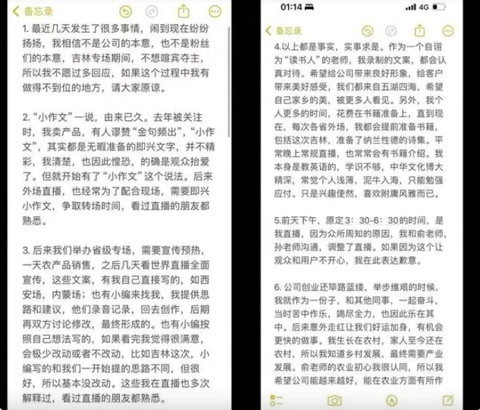 为此,董宇辉不仅在评论区回复让小编休息,还在个人社交平台发布长文回应了“小作文”一事,并介绍了东方甄选的小作文创作模式,一是他自己创作,如西安场、内蒙场。二是他提供思路和建议,小编创作,双方讨论修改。三是小编自主创作小作文,他极少改动或不改动。