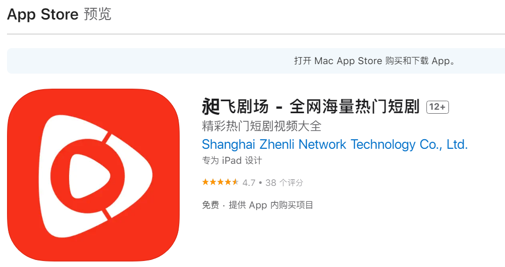 而昶飞游戏推出了两款短剧APP——闪动星剧场和昶飞剧场。