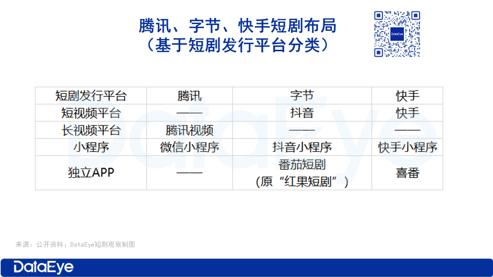在发行平台侧,腾讯、字节和快手是短剧赛道的主要玩家。