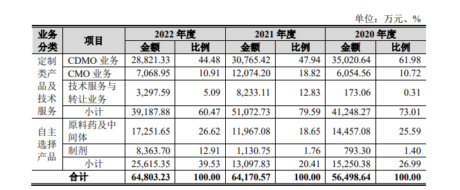 目前,诺泰生物的主营收入都由上述产品贡献。以2022年数据为例,诺泰生物当期主营收入为6.48亿元,定制类产品和技术服务贡献3.92亿元,占比60.47%;自主选择产品贡献2.56亿元,占比39.53%。![]()