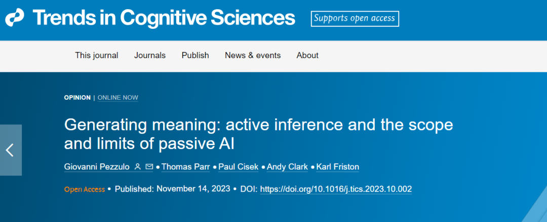 在《生成意义:主动推理与被动AI的范围与限制》一文中,Giovanni Pezzulo、Thomas Parr、Paul Cisek、Andy Clark和Karl Friston试图通过比较生命有机体的主动推理模型(active inference)与AI的被动生成模型,指明“理解”的真正基础,并思考生成式AI是否能够获得理解能力。