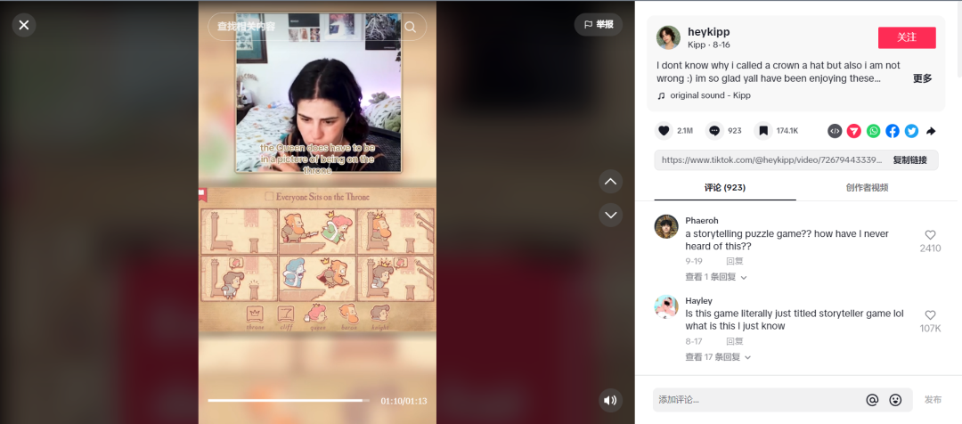 海外一侧,《Storyteller》的走红路径和国内大差不差,最开始都是游戏主播在玩,甚至是直播的片段放到 TikTok 上都有很高的人气。