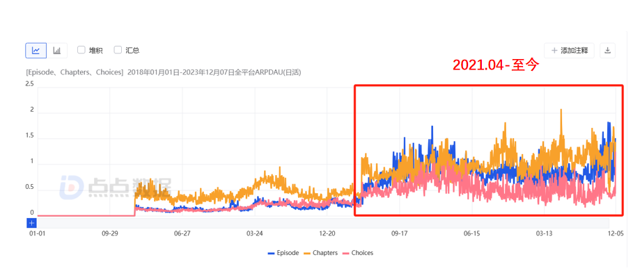 三家头部互动小说厂商的ARPDAU | 图源:点点数据