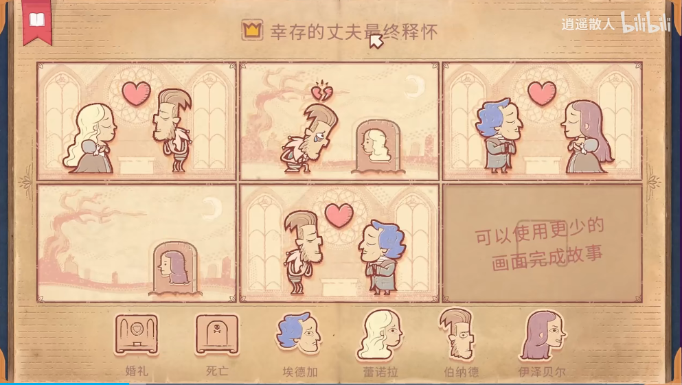 以上内容来自《Storyteller》,玩法非常简单,就是玩家通过组合不同的场景和人物在限定的分镜中对给定的主题进行演绎,鼓励玩家脑洞大开,切题即为通关。