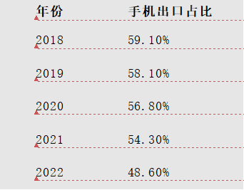 2018-2022手机出口占河南省出口比例 数据来源:郑州海关