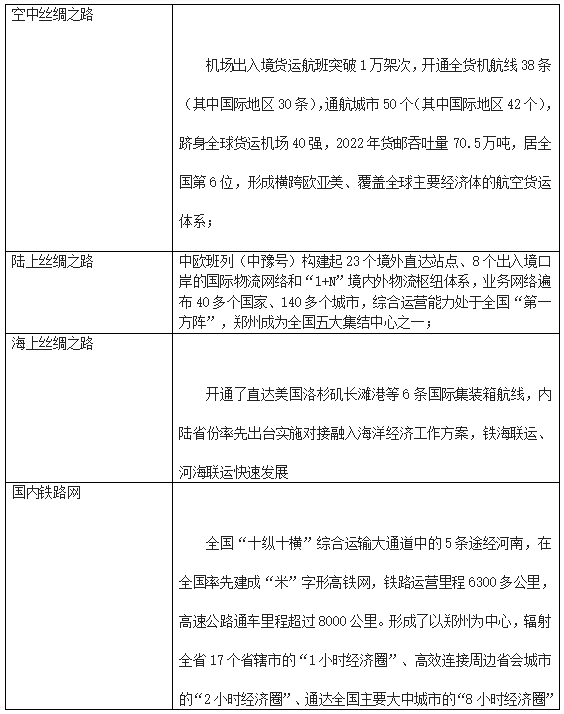郑州市目前是全国12个最高等级国际性综合交通枢纽之一、全国唯一的空港型国家物流枢纽,2小时高铁圈覆盖4亿人口,2小时航空圈覆盖全国90%以上人口和市场。