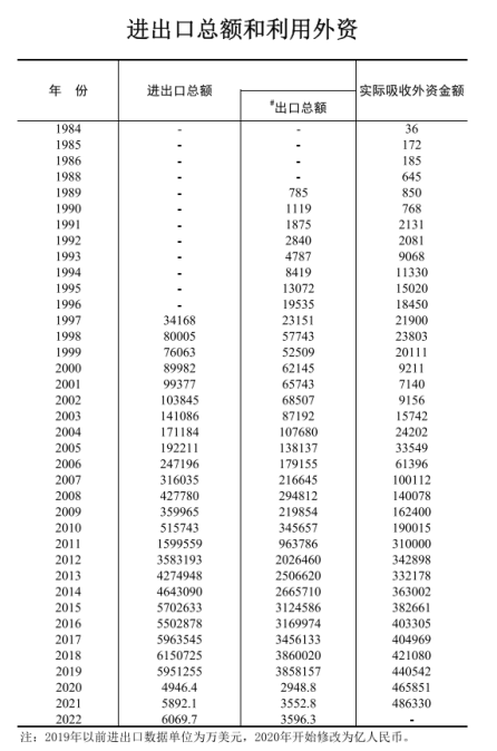 这是1983-2022年郑州进出口总额和实际吸收外资金额数据,几乎是“金字塔”式的增长结构。