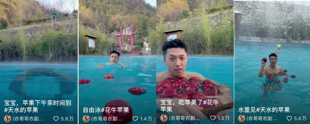 能承接巨大流量的男色博主也有,比如曾经半裸上身说着“天水的苹果天水的人”的“苹果哥”,成功将甘肃天水与优质苹果进行强绑定。但整体来看,男色消费赛道至今还未形成稳定、可复制的商业循环。