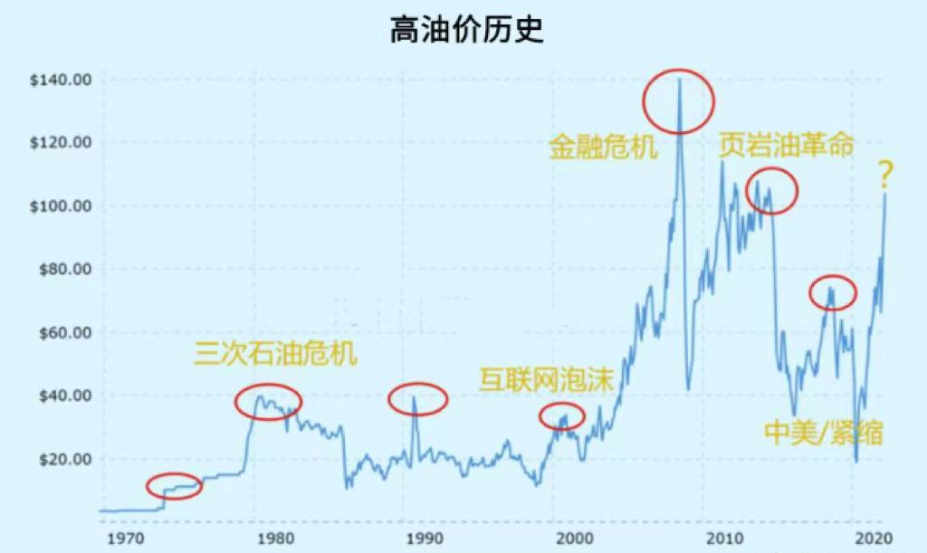 原油后续的价格走势,可以从石油周期中观察。历史上全球高油价之后,至少有超过5次的回撤幅度超过50%。