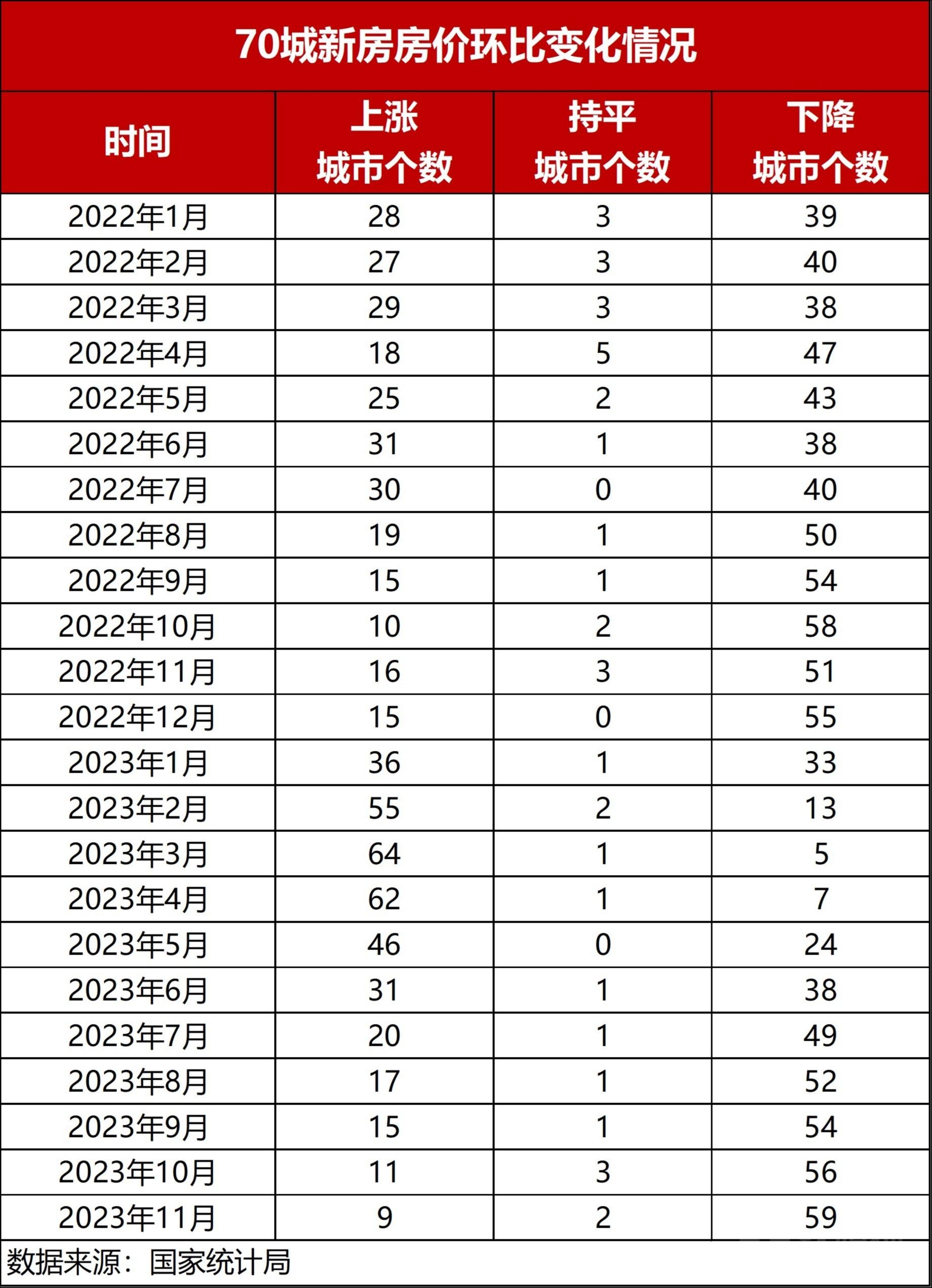 12月15日,国家统计局发布了11月份70个大中城市房价变动数据。