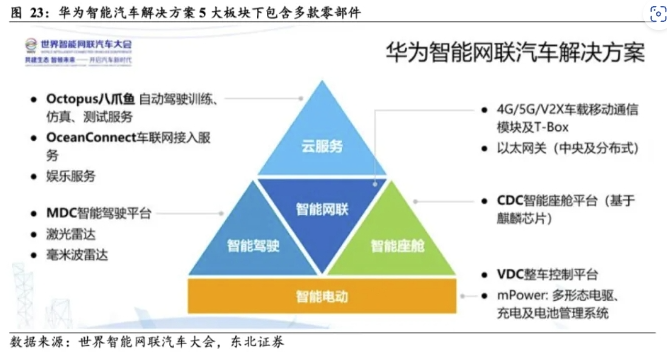 HI模式在底层技术上也复用了华为在其他业务上的资源,在这一模式下,华为向车企提供全栈智能汽车解决方案,包括计算与通信架构、智能座舱、智能驾驶等。