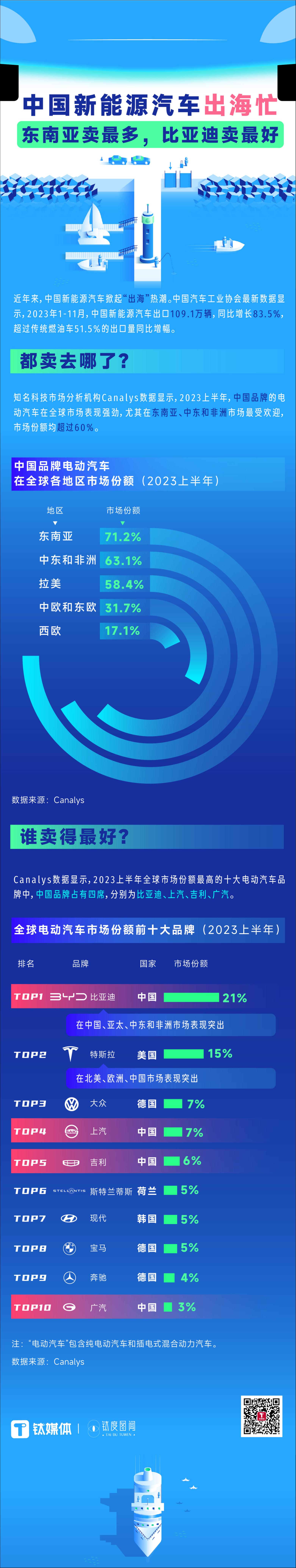 中国新能源汽车出海暴增80%,一图看懂都卖去哪儿了|钛度图闻