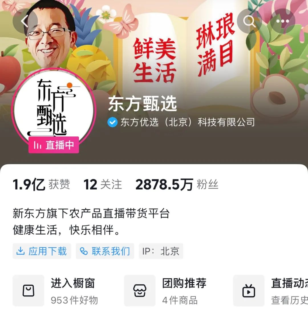 东方甄选抖音号目前的粉丝量,图源东方甄选官方抖音账号