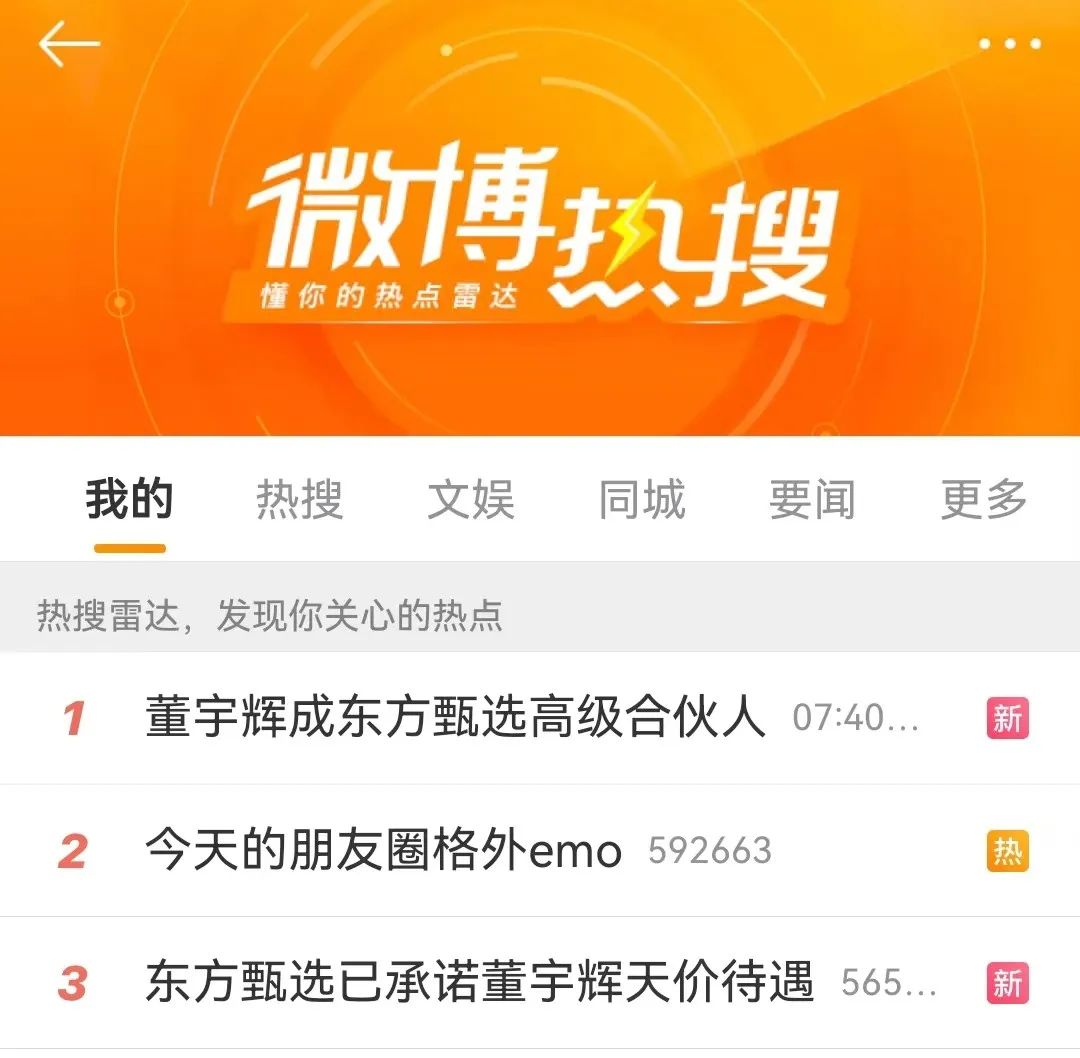 沸腾了,热搜第一。在今天(18日)股市开盘前,董宇辉身份已成东方甄选高级合伙人!同时,“东方甄选已承诺董宇辉天价待遇”也登上热搜第三。