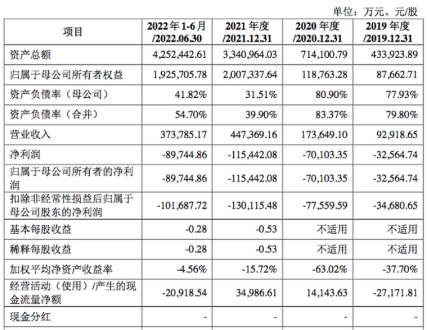 同时,蜂巢能源另一问题便是其至今仍处于巨额亏损中。据招股书显示,从2019年到2022年上半年,蜂巢能源的净利润分别为3.26亿元、-7.01亿元、-11.54亿元、-8.97亿元,3年半时间里累计亏损超过30亿元。