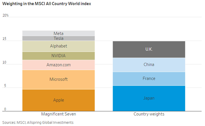 12月18日消息,今年以来,美股“七巨头”在美国市场上越来越高的权重和影响力,早已被业内来回重申了多次——这七只股票的市值已膨胀到标普500指数市值的30%。另有一组统计显示,在号称覆盖了全球约85%可投资股票市场的基准指数——MSCI全球股票指数中,“七巨头”的总权重已超过中国、日本、法国和英国所有成份股票的权重之和。