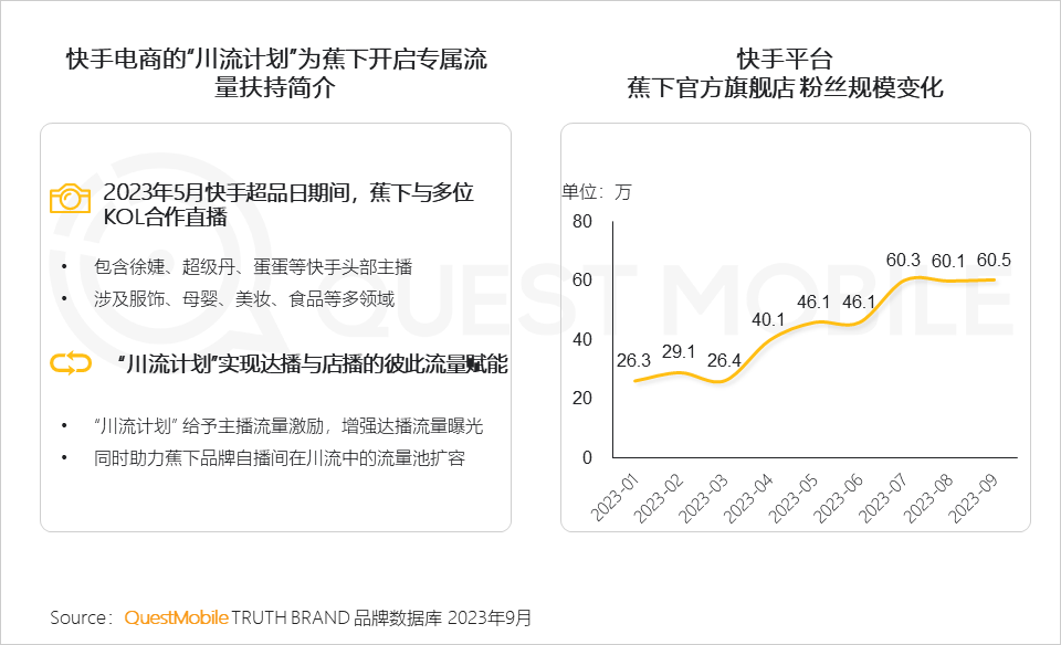 2.3 商域引流也是扩大品牌私域流量池直接有效的方法,快手川流计划为蕉下开启专属的流量扶持后,私域流量规模增长明显