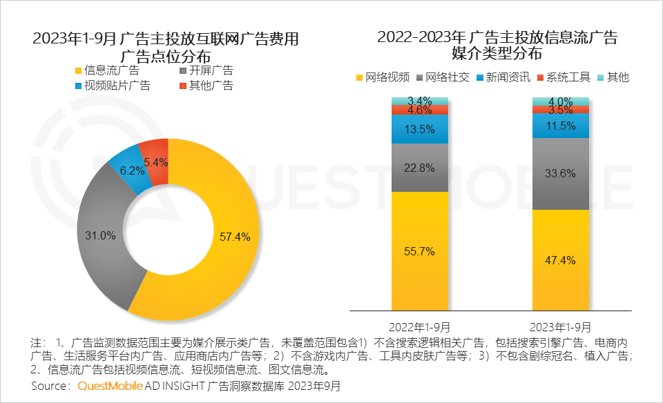 QuestMobile数据显示,2023年9月短视频媒介广告收入占比45.2%,排名第一;从具体媒介来看,抖音广告收入占比29.1%,夺得头把交椅,快手、微博、小红书广告收入占比分别上升3.6个百分点、2.2个百分点、0.2个百分点。