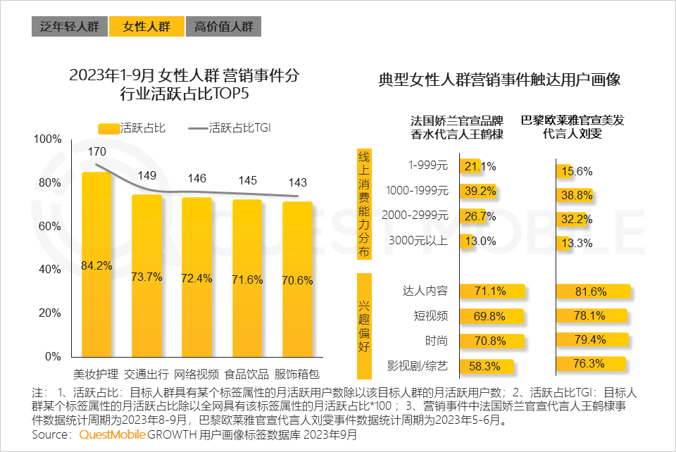 2.3 在‘吃’‘穿’‘用’‘行’等方面对女性用户的渗透率更高,女性消费力不容小觑
