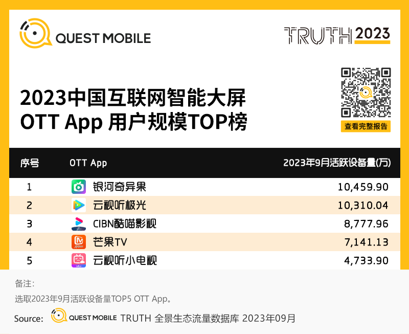 7、2023中国互联网智能大屏OTT APP用户规模TOP榜