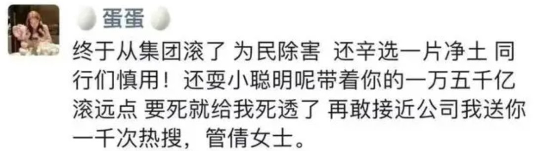 而在管倩刚刚上任时,蛋蛋同样喊出了“CEO……我师父惯着你,不代表我惯着你”等类似言论。
