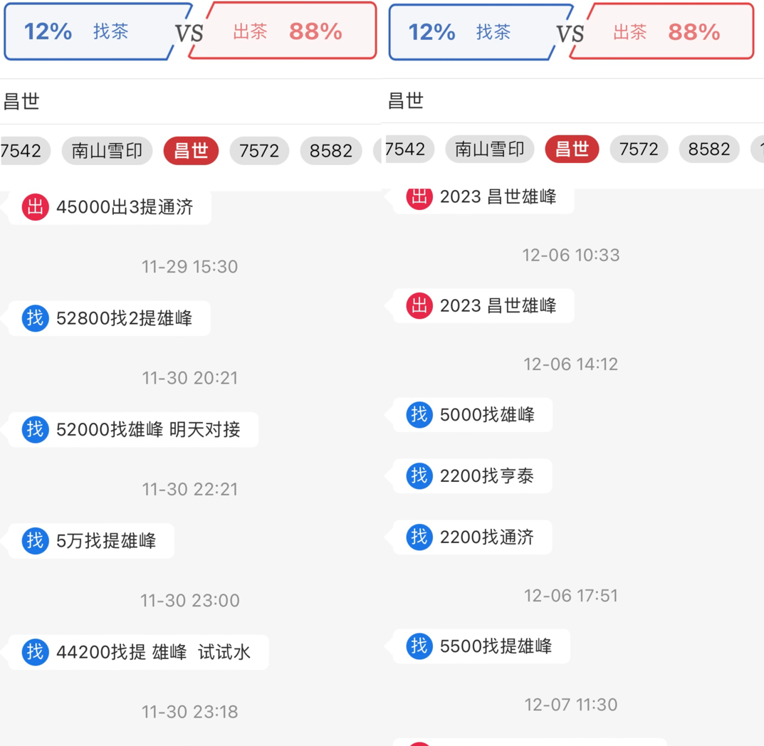 昌世茶饼在11月末和12月初的价格变化/找找茶