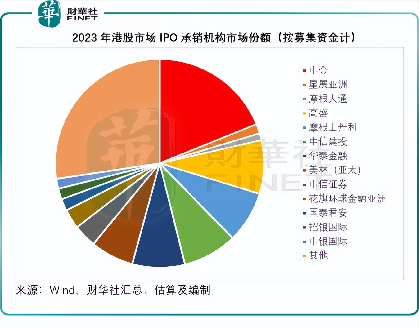 IPO承销规模最大的依旧是中金,募资资金为76.47亿港元,市场份额达18.88%,已远超外资投行如高盛和摩根士丹利,后两者的IPO募资规模所占的市场份额分别为8.29%和7.98%。