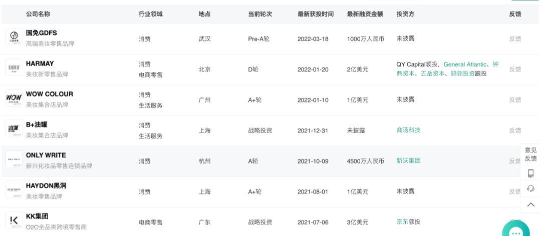 据化妆品垂直媒体“根号C”不完全统计,2020年到2021两年内获得融资的品牌,已有至少14个品牌倒闭。这两年获得融资的美妆品牌倒闭率达到15%。