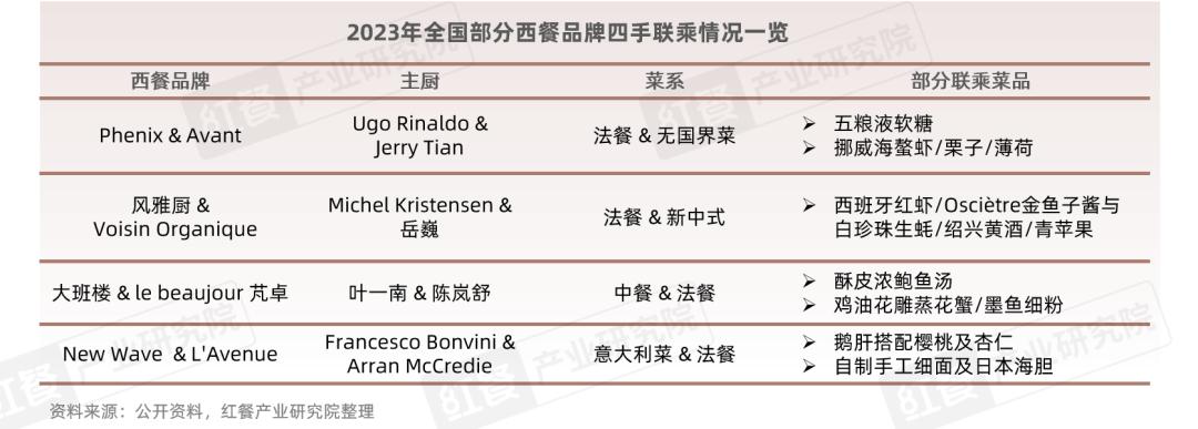 四手联乘已成为精致餐饮领域的热门话题,一众西餐品牌纷纷开始尝试四手联乘。比如,澳门新濠集团的会员俱乐部“新濠风尚”联合十家黑珍珠餐厅指南内地钻级餐厅,打造出强强联手的餐饮盛事“2023黑珍珠钻级餐厅巡宴”。