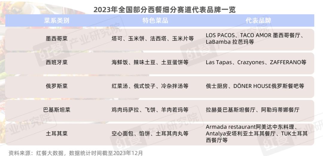 其中,不少西餐从业者锚定西班牙菜和墨西哥菜两个细分赛道,目前已取得了一些成绩。红餐大数据显示,截至2023年12月,聚焦西班牙菜的Crazyones已开出了10余家门店。主打墨西哥菜的LaBamba拉芭玛已开出了约3家门店。此外,俄罗斯菜、巴基斯坦菜、土耳其菜等细分赛道亦受到了一些关注。