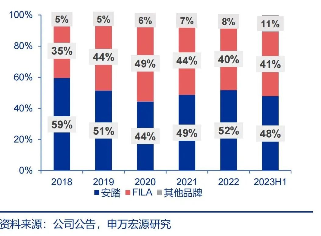 这给安踏带来的好处是,一方面形成了覆盖不同价格梯度和不同消费场景的矩阵,覆盖的整体人群总量规模是更大的。另一方面,安踏可根据市场变化,灵活选择出哪张牌,支撑整体营收增长。比如,在时尚运动风流行时,支撑安踏业绩增长的新曲线就是FILA。而在户外运动风兴起时,安踏又可以打出亚玛芬这张新牌。