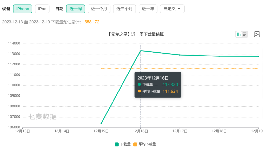 从七麦数据来看,《元梦之星》上线以来在苹果移动端的日均下载量是11万,游戏在App store免费游戏榜霸榜多日,在畅销总榜则一直位于前10位。流水上,《元梦之星》近七日iOS端的日均流水预估在150万美元左右,以此计算,游戏首周流水超千万美元,按安卓流水默认为iOS端的两倍来看,《元梦之星》首月流水预估在10亿元左右。