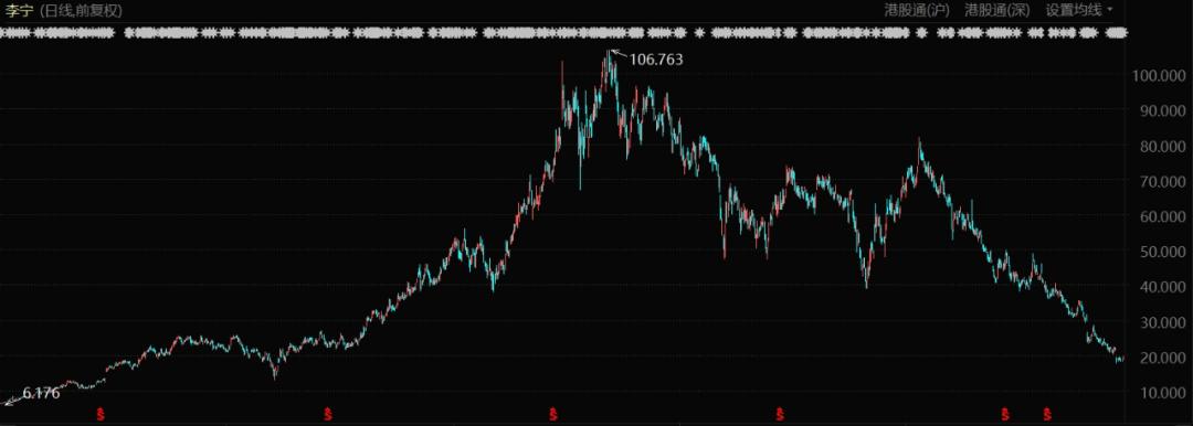 今年以来,港股体育板块经历了多次集体下跌,李宁股价年内的跌幅一度高达80%,市值蒸发2000亿元;特步双11战绩一出,股价就向着历史新低进发;安踏的总体市值虽然远高于李宁和特步,但年内股价也是从123.76元/股的高位跌回了70元/股附近。