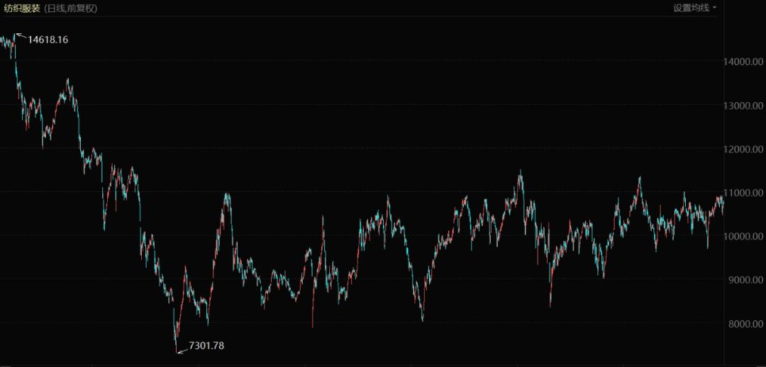 贸易战开打不久,A股纺织服装板块指数就从2017年的超过14600点跌到了2018年的7300点左右,并且直至今日板块指数都在低位徘徊,受到经济环境变化的冲击较大。