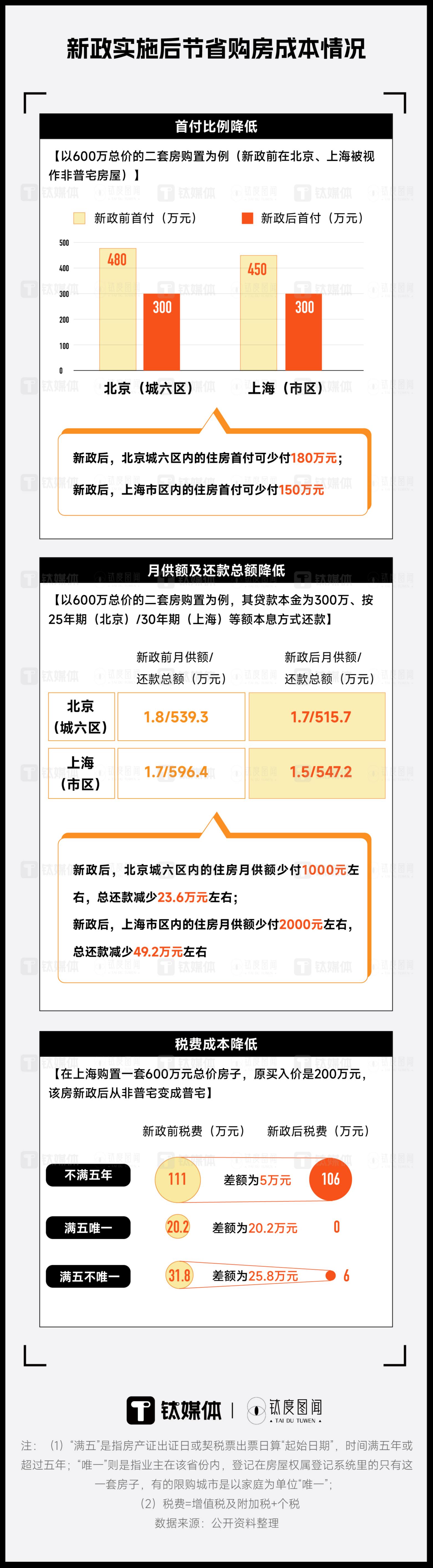 作为全国楼市“风向标”的北京和上海,此次新政落地可以给购房者带来多大程度的优惠?又会对房地产市场有多大的推动作用?本期钛媒体·钛度图闻带你关注。