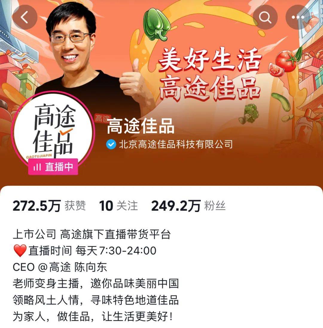 而高途佳品目前主要有高途佳品、高途佳品珍食汇2个抖音账号,尚未给旗下主播建抖音账号。“目前(高途佳品)主号的资源不足,没有精力给单一主播开设账号。”陈向东在媒体会议上称。
