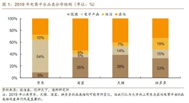 (2019年电商平台品类分布结构 图源:德邦研究所)
