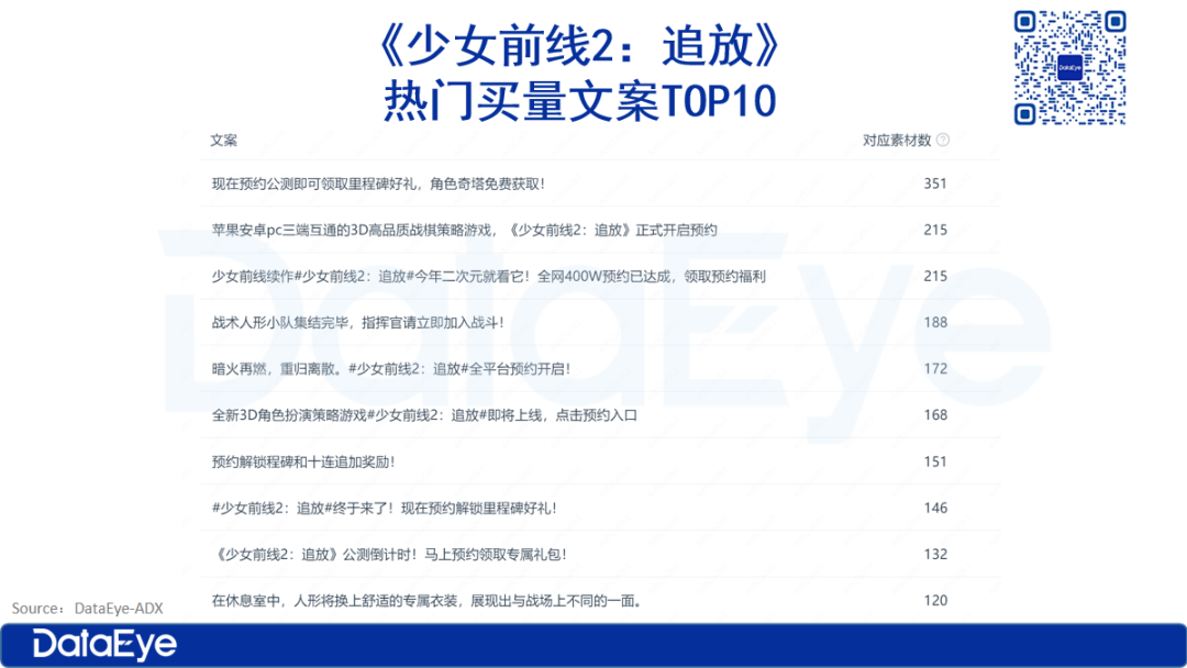 《少女前线2:追放》项目组在买量文案上表现常规,主要呈现出三个思路: