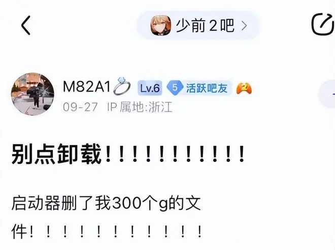 ②10月《少女前线2》在测试过程中,有网友发现:其游戏卸载程序竟然把E盘所存储的300G的文件直接和游戏文件一块儿给卸载干净。