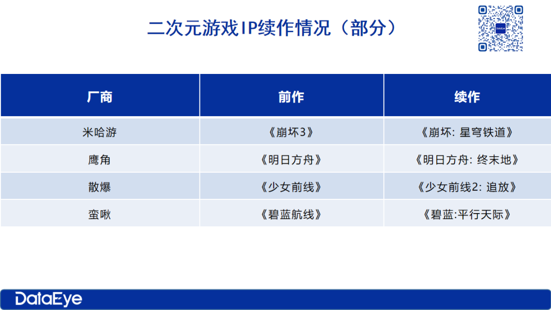 明年,上海二次元IP续作会陆续上线,如下图。二次元IP续作,成绩或走向分化?