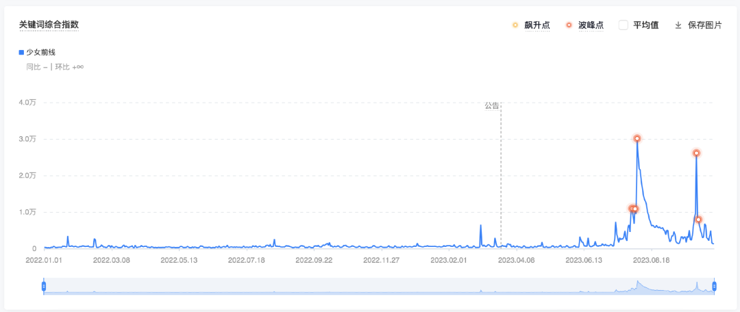 从IP视角来看:《少女前线》IP已是7年IP,已经经典怀旧光环加持,应有不错势能。巨量算数数据显示今年以来,抖音综合指数的情况: