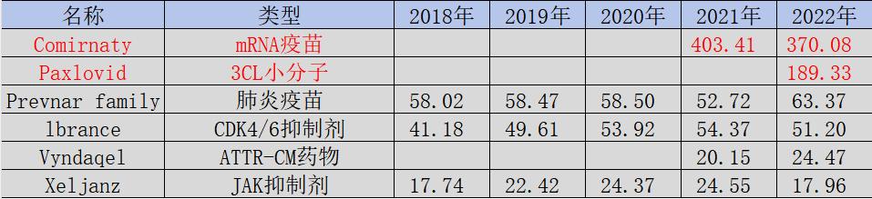 图:辉瑞核心药物营收趋势,来源:锦缎研究院