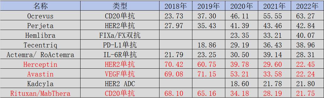 图:罗氏核心药物营收趋势,来源:锦缎研究院