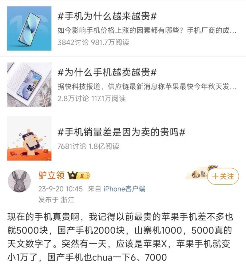 最近几年,智能手机越来越贵,在微博、知乎、B站等社交平台,总是不免看到许多类似吐槽:“国产手机也卖到7000块了?”“iPhone都破万了”“以前没钱买小米,现在没钱买小米