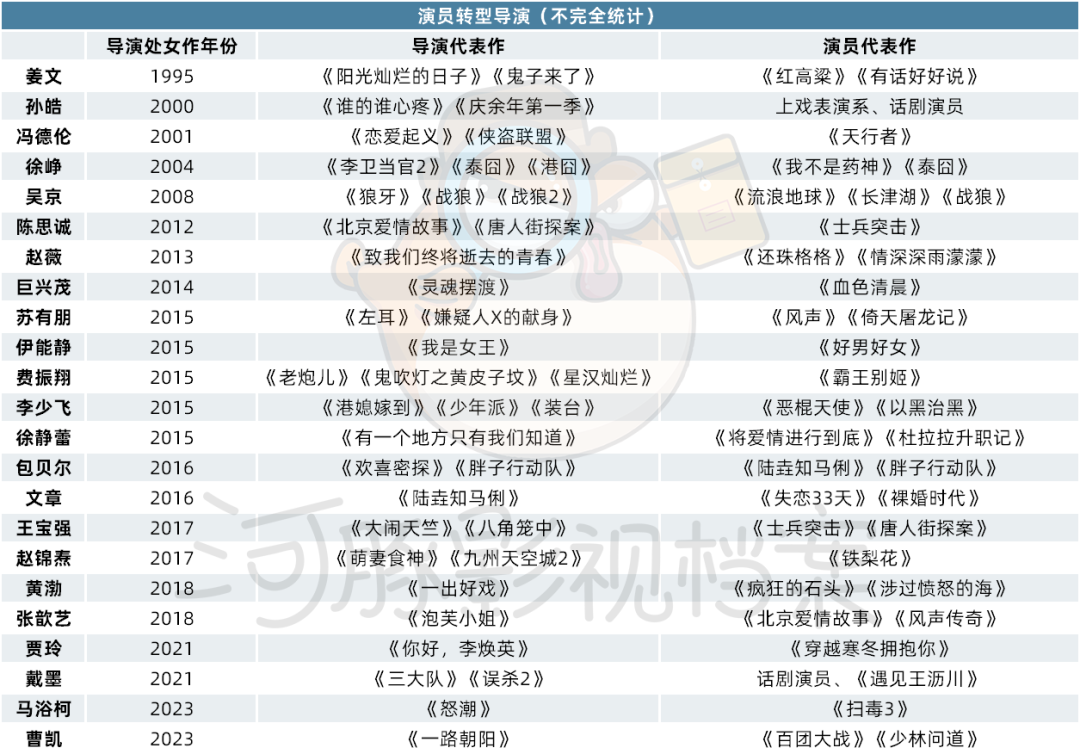 在影视行业,演而优则导不是新鲜事。即使过去近三十年,姜文仍然是演员转型成功的典型标杆,当时他所属的第五代导演中,张艺谋、陈凯歌都是从摄影师转型。